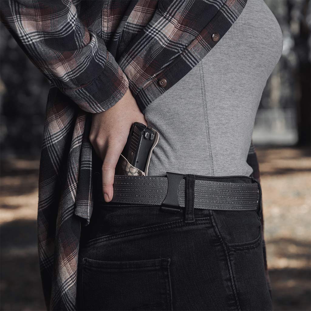 Two Rock Solid Spring Steel Clips with a tuckable, sleek design allows for deep, print-free concealment and accommodates a standard 1.5” belt or a wider 1.75” belt.