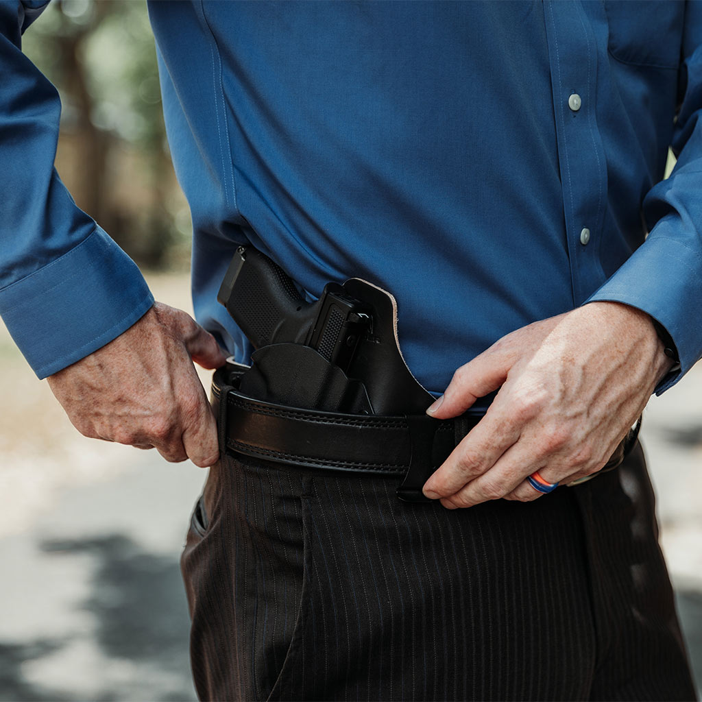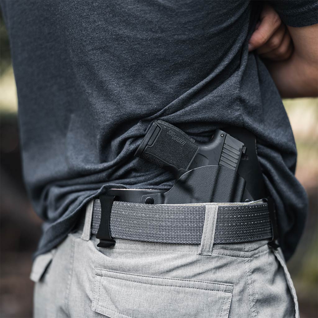 - Two Rock Solid Spring Steel Clips with a tuckable, sleek design allows for deep, print-free concealment and accommodates a standard 1.5” belt or a wider 1.75” belt.