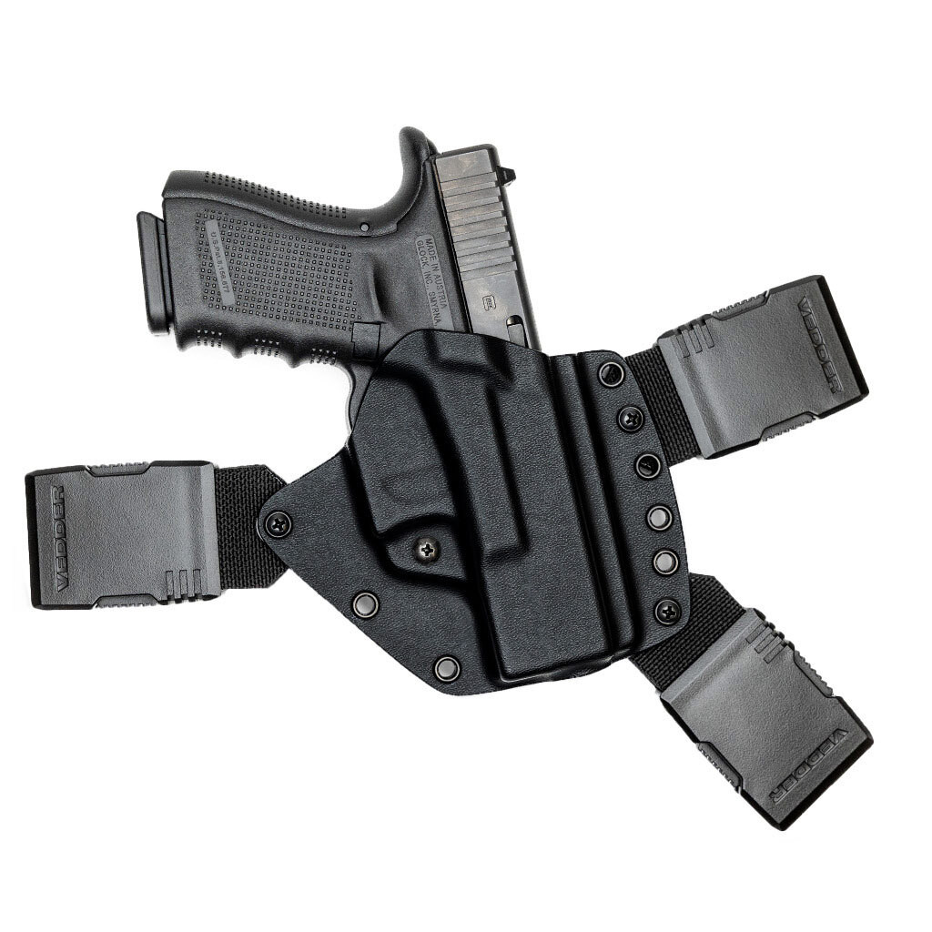 A serrated, quick-release three-buckle system makes it easy to strap in or remove your holster, even over bulky gear or while wearing gloves. Three points of contact keep your rig secure in every scenario.