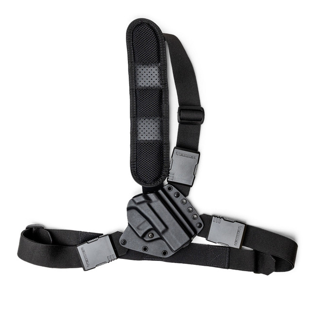 The EverTrek®'s double-sided, fully reinforced Kydex® chest holster shell allows for one-handed re-holstering and consistent retention.