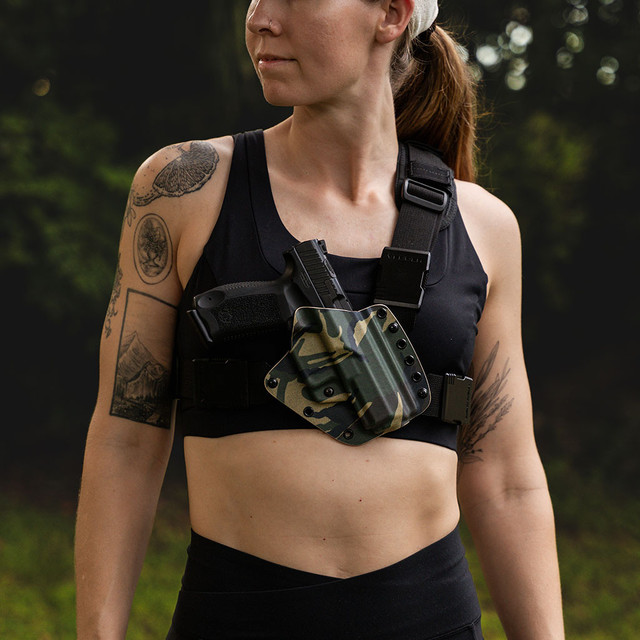 The Glock 34 (Gen 3, 4, 5) EverTrek® Chest Holster is designed to be your go-to wilderness companion. Perfect for hiking, hunting, fishing, biking, or running, you can explore with confidence knowing your firearm is always within reach without restricting your movement. Combining all the features of our popular LightDraw® OWB holster shell with a heavy-duty harness, the EverTrek® is a rugged, dependable chest carry holster geared for day-long treks. Sturdy, lightweight, and highly adjustable, this is the ultimate holster for your next adventure.
