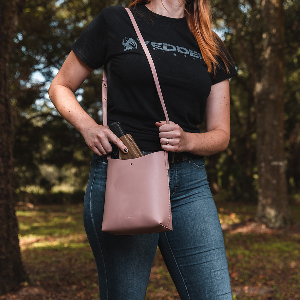• Eyelet hardware which is great for attaching holster to inside of carry bag or purse.